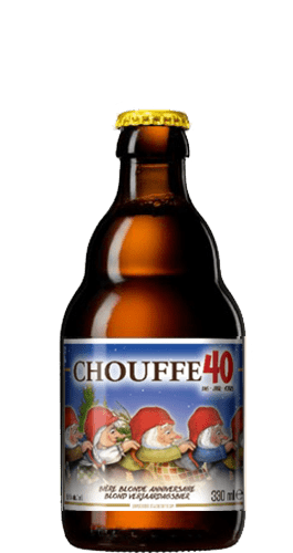 Chouffe 40 es una cerveza rubia belga de estilo Belgian Golden Ale, creada para celebrar el 40 aniversario de la gama de cerveza Chouffe. Se elabora con materias primas de la mejor calidad como agua, malta de cebada, azúcar, lúpulos, especias y levadura. El resultado es una deliciosa cerveza de carácter suave, con notas especiadas. Es la cerveza más ligera de la gama de cervezas artesana Chouffe.