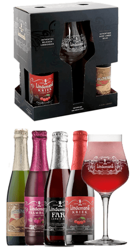 ¿Estás buscando cerveza para regalar? Este pack de cerveza lámbica Lindemans es el regalo perfecto para cualquier amante de la cerveza belga. El estuche contiene cuatro botellas de cerveza Lindemans (Faro, Framboise, Pecheresse y Kriek) de 33 cl y una copa original.