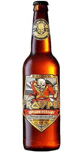 La gama de cervezas Trooper está inspirada en la banda de rock Iron Maiden. Su vocalista, Bruce Dickinson, se ha involucrado personalmente en la creación de las cervezas, en colaboración con la cervecería británica Robinsons. La cerveza Trooper es una Bitter Ale que ha obtenido hasta ahora un total de 18 premios en los más prestigiosos certámenes de cerveza.