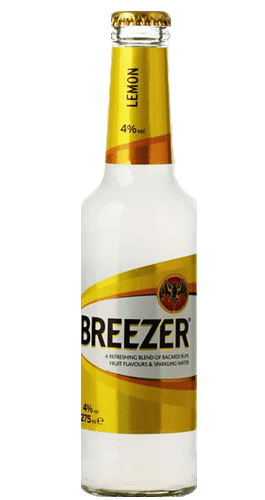 Breezer Limón es una bebida refrescante con un toque tropical, que se elabora con ron Bacardi blanco, zumo de limón natural y agua carbonatada, parecida al típico mojito. Resulta ideal para una reunión o fiesta con amigos, a los que sorprender con un cocktail sin necesidad de mayores preparativos ni recetas. Pertenece a Casa Bacardi, destilería familiar fundada en 1862 por Facundo Bacardi.